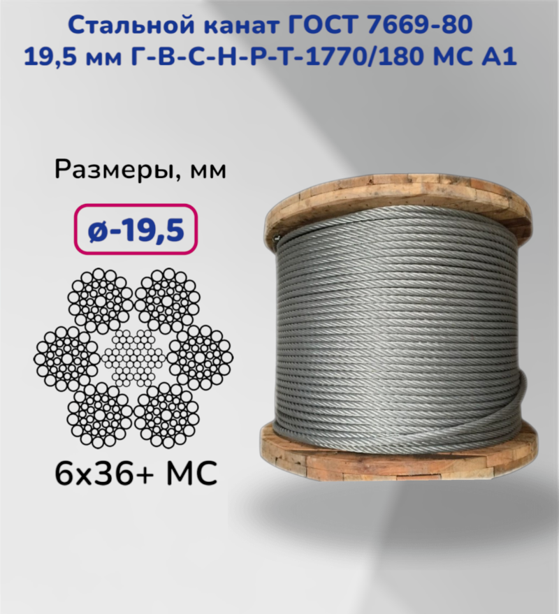 Стальной канат ГОСТ 7669-80 19,5 мм Г-В-С-Н-Р-Т-1770/180 МС А1